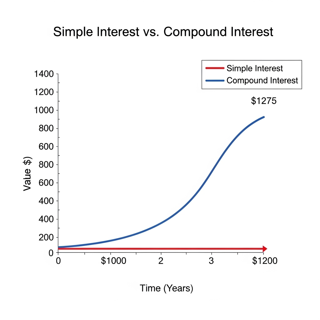단순 이자는 원금에만 이자가 붙지만, 복리는 시간이 지날수록 눈덩이처럼 불어납니다.