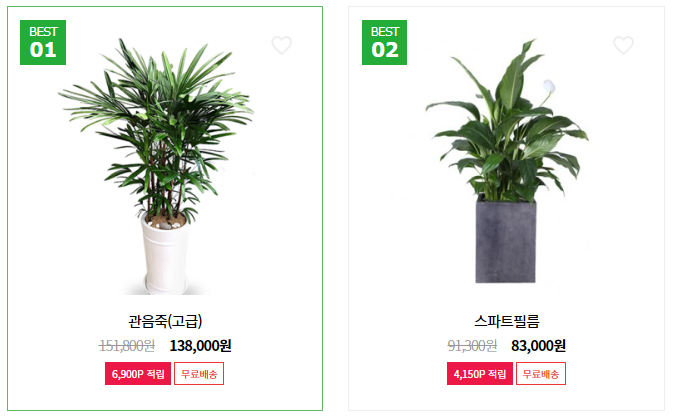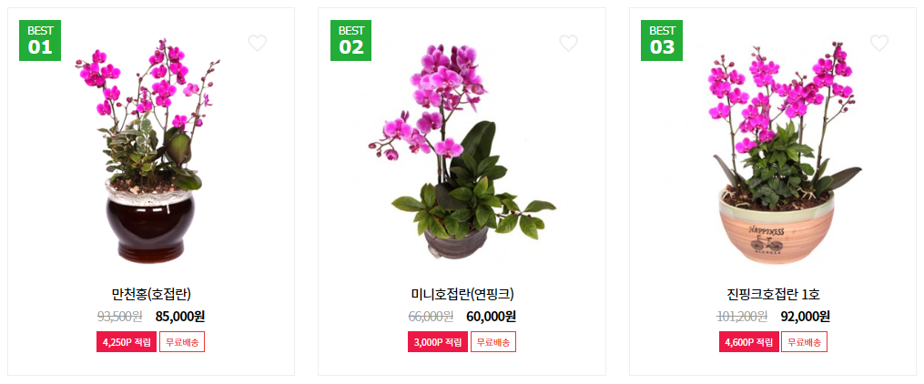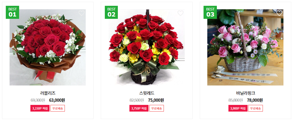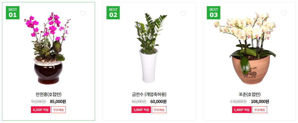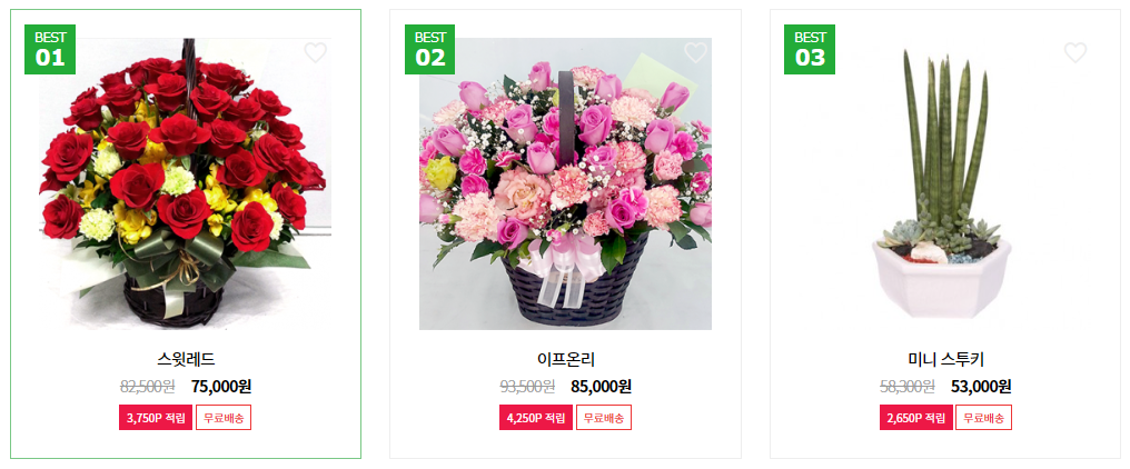 - 꽃바구니: 개업 축하, 집들이 선물용