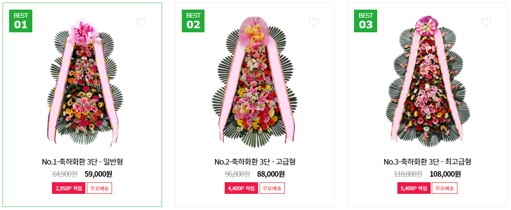 - 축하 화환: 개업식, 전시회, 공연 등 이벤트용