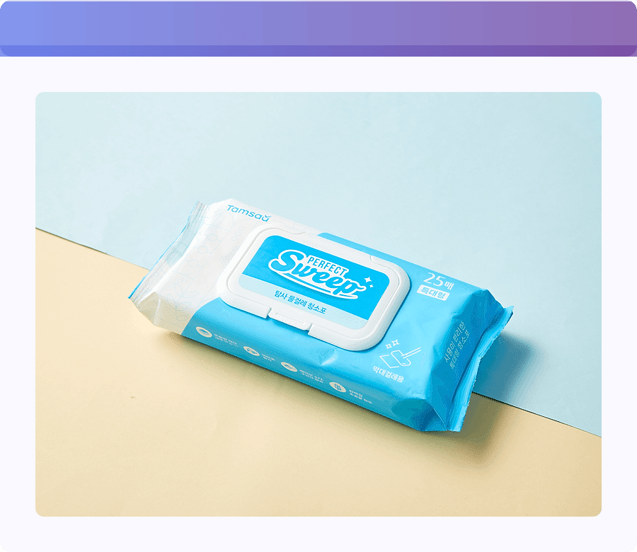 캡형 디자인은 보관이 용이하고, 청소포가 마르는 것을 방지하여 마지막 한 장까지 촉촉하게 사용할 수 있도록 도와줍니다.