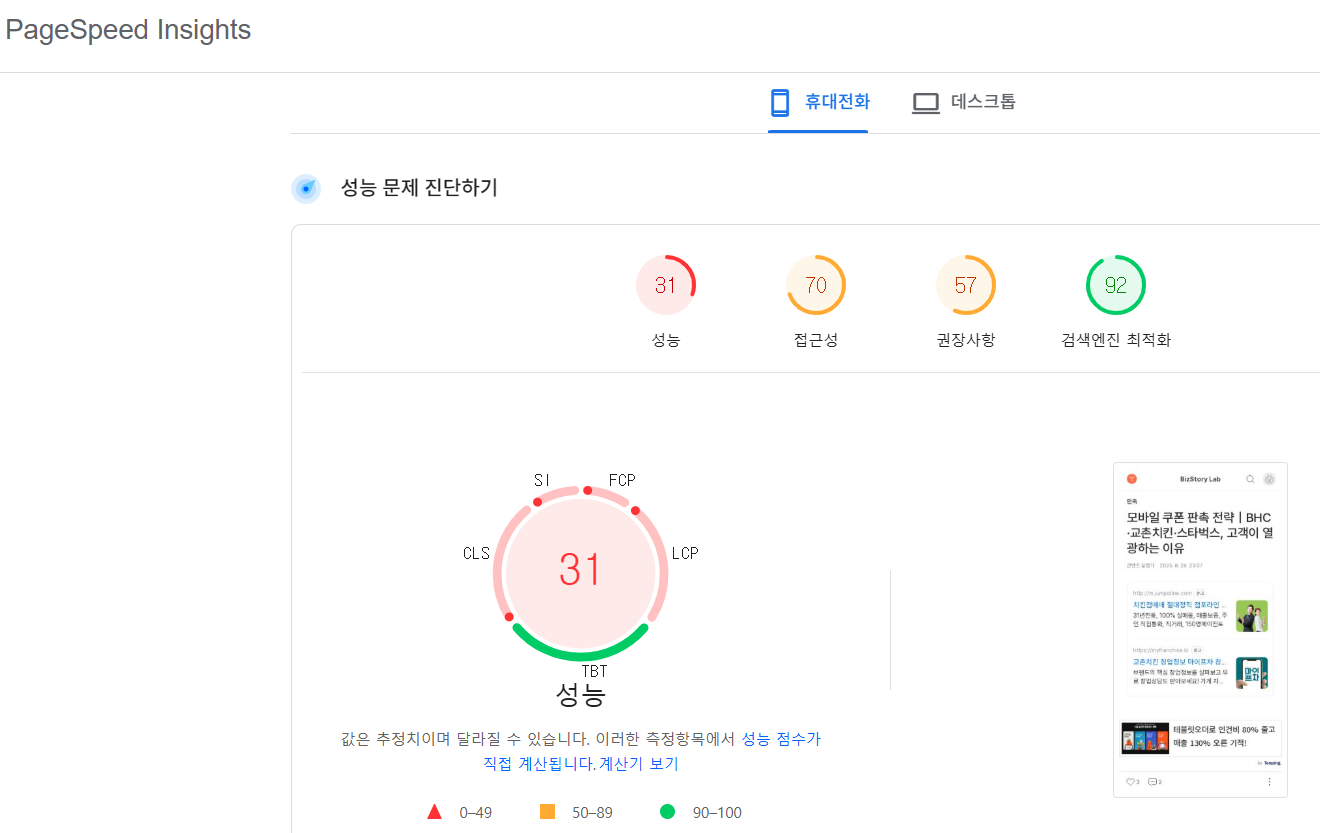 - 로딩 속도 체크 (PageSpeed 활용) → 미국이나 다양한 국가들이 한국처럼 인터넷이 빠르지 않습니다.