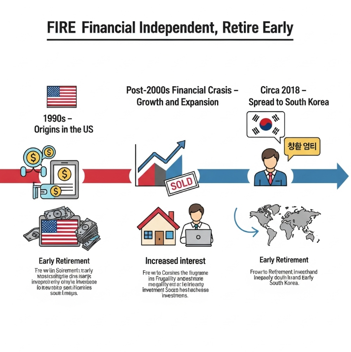 - 2010년대: 유튜브·블로그 등을 통해 FIRE 운동이 세계적으로 퍼짐