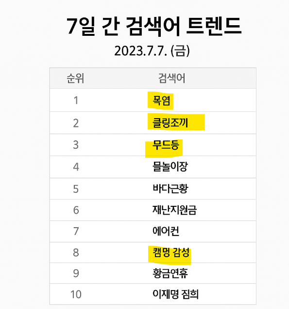 ▶ 예시 키워드: ‘무드등’, ‘캠핑 감성’, ‘폭염템’ 등