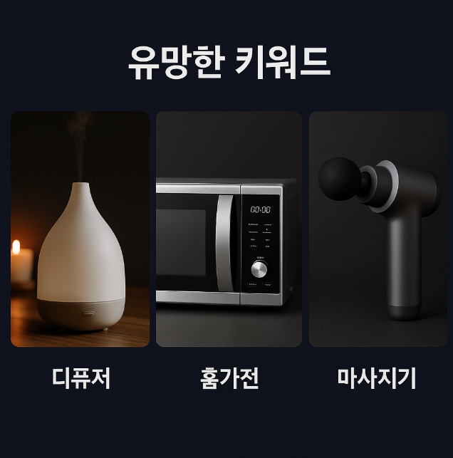 - ‘작은 사치’, ‘감성 인테리어’ → 디퓨저, 미니가전, 무드등