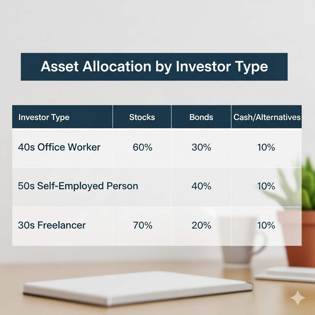 투자 경험·연령·직업 안정성에 따라 비율을 조정할 수 있으며, 초보자는 안전자산을 높이고 숙련자는 성장자산을 늘리는 방식이 적합합니다.