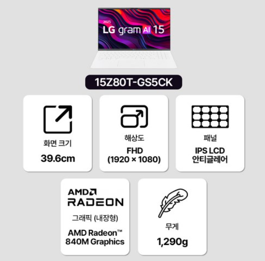 LG 그램 2025 AI 15 (19% 세일, 172만 원, 후기 100+) → 최신 AI 기능·장기 투자, 전문가·창업가 추천